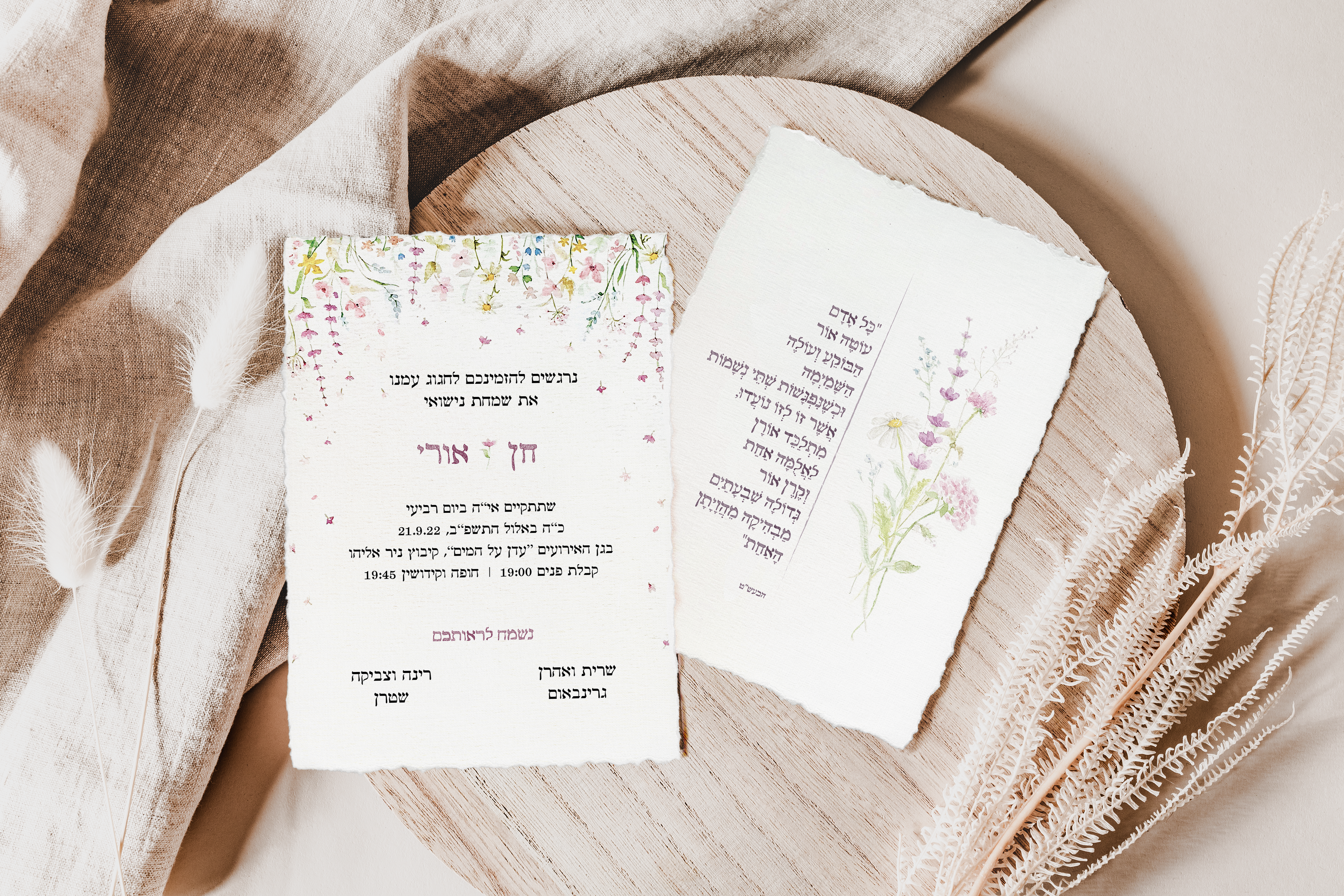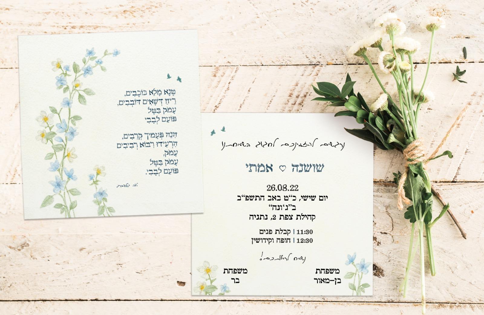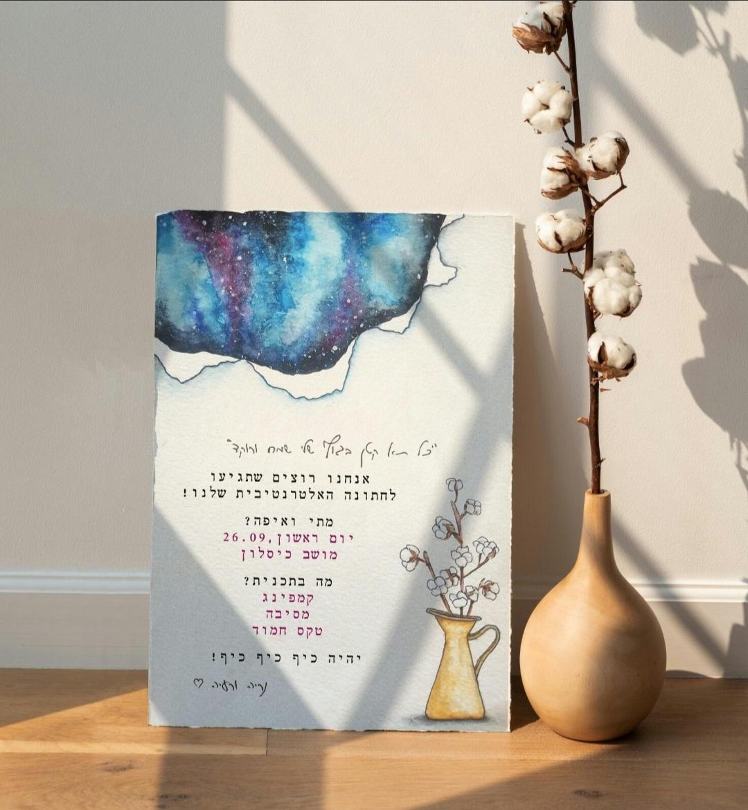 לרעיה הגעתי במקרה, וזה פשוט הדבר הכי טוב שעשיתי סביב החתונה!! היה לי חלום לעשות הזמנה בצבעי מים, ורעיה הגשימה לי אותו! עם הרבה (מאוד!!!) סבלנות, עיצבנו יחד את הזמנת החלומות. רעיה הייתה קשובה לאורך כל הדרך, כל דבר קטן שרציתי היא שינתה ועיצבה כפי שרציתי תוך מתן דעה עיצובית. היה ממש כיף לעשות את זה ביחד וליצור את ההזמנה. פשוט תענוג לעבוד מולה!! קיבלנו אינסוףףףףףףףף הודעות מחברים על כך שההזמנה מהממת! רעיה מומלצת בחום ואין לי דבר רע אחד להגיד. בנוסף רעיה עיצבה לנו את הברכונים לשבת והתפריטים❤️❤️❤️