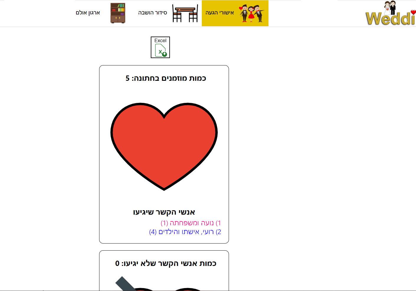 וודי - אישורי הגעה וסידורי הושבה לחתונה
