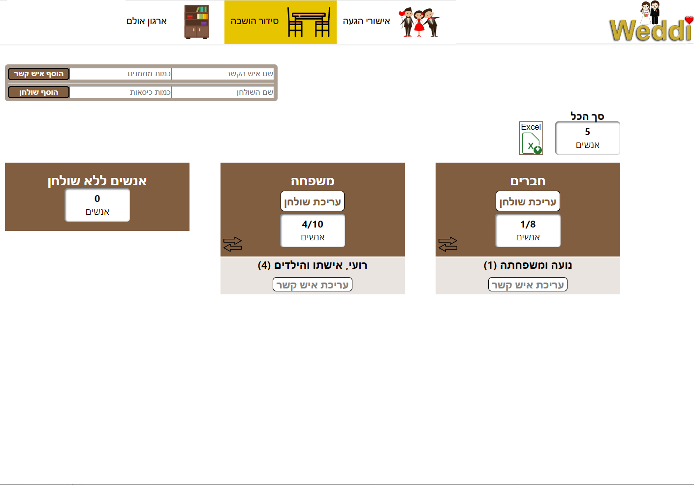רוב האולמות נותנים שירות הושבה בחינם: מעלים קובץ אקסל ואפשר להתחיל להושיב.