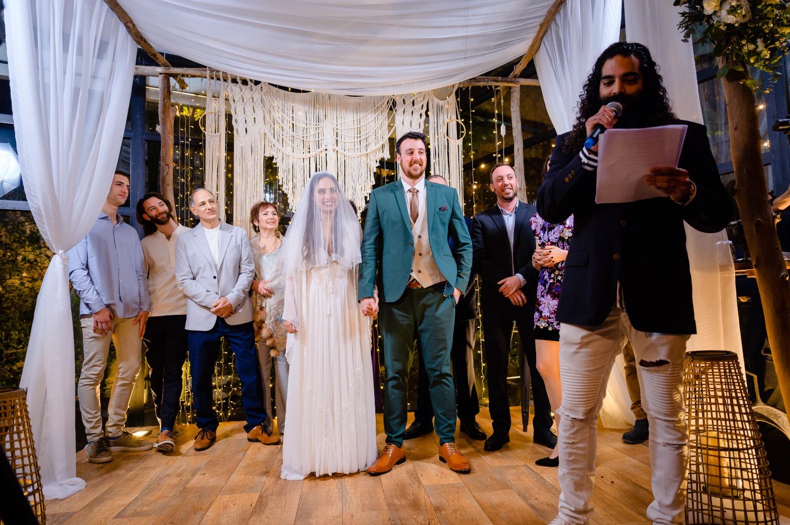 טוב אני לא יודע מאיפה להתחיל אבל בשיחת טלפון אחת כבר ידענו שהוא הולך להיות להנחות לנו את הטקס.עשינו שיחת זום כי אפילו לא היינו צריכים להיפגש מרוב שידענו שזה נכון ואכן צדקתי בסוף.בשיחה דיוקנו מילים וכוונות ודוד עזר לנו להתחבר יותר לטקסט שכתבנו ובאמת להרגיש את מה שאנחנו כותבים.את הטקס ביצענו בליווי של גיטרה( דור )שהכניס אלמנט מדהים שאני ממש ממליץ לצרף דוד הוא גם מוזיקאי מדהים כך שהוא ידע איך להוביל אתנו להתרגשות ובנה עלילה וכינס אתנו ואת הקהל לתוך הטקס.באמת מרגישים את החיבור שלו ואת הרצון והשליחות לבצע חיבורים נישמתיים.בקיצור דברו איתו בטלפון וכבר תבינו על מה אנחנו מדברים.שיהיה לכל הזוגות החדשים הרבה מזל טוב.