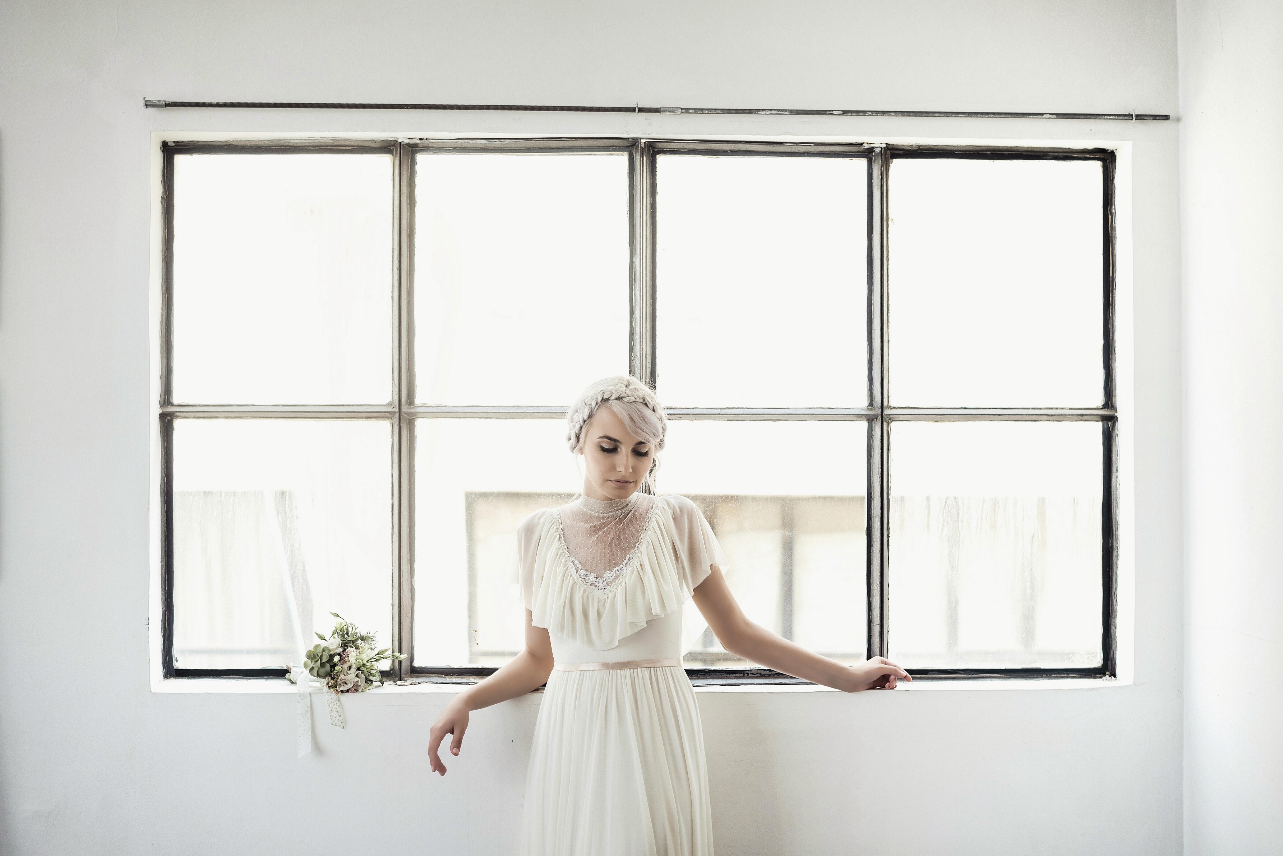 הסטודיו מקסים, מלא מלא לבן ושמלות יפות יפות ומיוחדות.